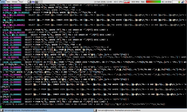 Não sei porquê, mas o terminal onde eu estava rodando o mongrel enlouqueceu. Não sei como ele recebeu um caracter de controle e ficou assim: